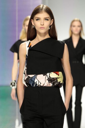 Veran jednostavnom i savršenom kroju ali i bojama bez kojih ne možemo da zamislimo primenjenu umetnost, Simons je prezentovao kolekciju koju su inspirisale svilene marame geometrijskog i crvetnog printa kojima se proslavio veliki Christian Dior.
