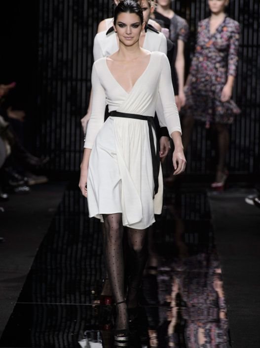 Upravo takvu DVF ženu najbolje je dočarala mlada Kendall koja je dominirala na pisti stilizovana u mekane pulovere, zavodljivu čipku i poluprozirne čarape na tačkice.