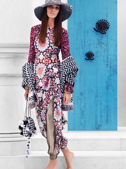 Najnovija Cruise kolekcija oslikava Lagerfeldov doživljaj romantičnog i modernog Orienta, te ne čudi što je prezentovana u Dubaiju, mestu gde se susreću istok i zapad. Ono što smo videli su šareni materijali, izuzetne teksture i kitnjasto ukrašene haljine, Aladinove papuče, šalvare i sakoi kakve samo Chanel može da napravi.