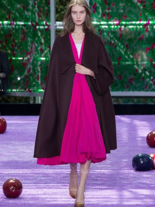 Raf Simons je set sa jučerašnje Dior revije opisao kao jednu bajku, ali bajku koja je nastala u prostoru koji je miks crkvenog ambijenta, bašte i kluba na Ibici. Ružičasti travnati pod nalik velikoj šečernoj peni je poslužio za pistu po kojoj su modeli prodefilovali dok je kao glavna scenografija reviji poslužio red panela obojenih u vedre, vesele boje.