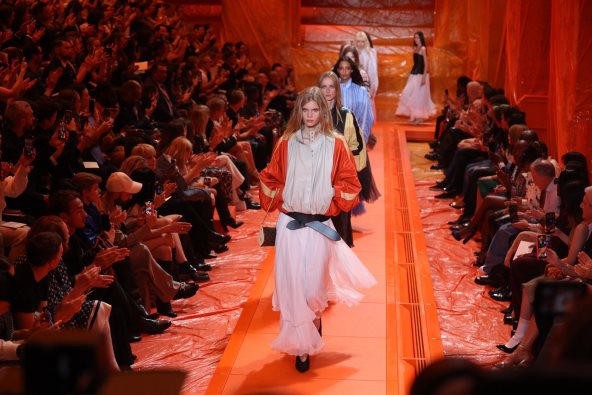 Pred sam kraj dogodila se još jedna od poslastica, Louis Vuitton revija za proleće/leto 2024. mesto događaja - Champs-Elysées, secesijski prostor iz 19. veka koji se renovira i koji će biti novom adresom brenda, pretvoren u narandžastu (plastičnu) instalaciju, nalik balonu na topao vazduh, privuklo je brojna slavna imena, kao što su Anna Wintour, Ana de Armas, Zendaya, Jaden Smith, Jennifer Connelly, Phoebe Dyvenor, Cate Blanchett, Saoirse Ronan...
