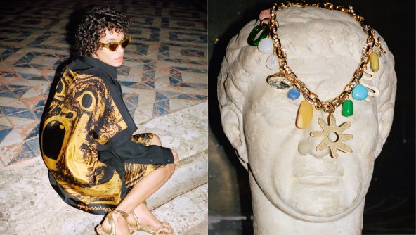 Inspirisan sanjivim italijanskim palatama, venecijanskim staklom i čarobnim grotama sa školjkama, kolekcija za leto 2024. prenosi stanje uma na odmoru. U paleti zalaska sunca od narandžaste, medeno-žute i boje pistaća, sa bogatim vezom i upadljivim printovima, haljine za golden hour fantastično idu uz jednostavan stil za plažu.