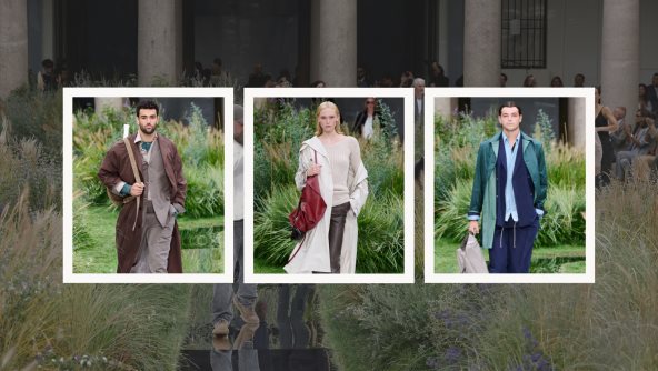 Dvorište palate pretvoreno je u mirnu zelenu oazu: estetski umirujući pejzaž, koji je pružio trenutak predaha u gradu poznatom po svojoj užurbanosti. Manekeni su hodali duž organske, vijugave piste kroz botanički pejzaž, dodatno pojačavajući kontrast između tradicionalnih struktura korporativnog odevanja i koncepta bega iz kancelarije.