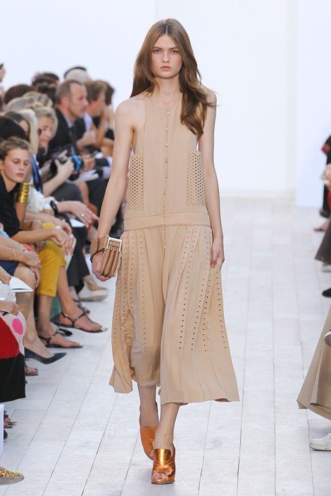 Tokom revije odata je počast britanskoj nepredvidivoj klimi tako što su se manekenke nizale jedna za drugom noseći kišobrane.