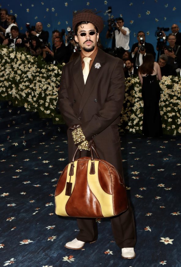 Dodajući element portorikanske tradicije svom izgledu, Bad Bunny je nosio tamnosmeđi mini pava šešir i Prada odelo, stvarajući elegantnu interpretaciju ovogodišnje teme.