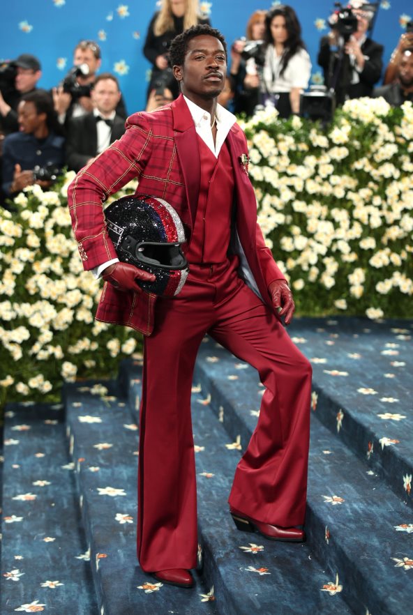 Kao jedan od co-chair domaćina večeri, Colman Domingo s pravom je privukao pažnju već pri samom dolasku. Njegov dvodelni styling bio je omaž legendarnom uredniku Andréu Leonu Talleyju, koji je 2011. godine na Met Gali nosio sličan plašt. U toku večeri, Domingo je skinuo raskošni plašt te otkrio Valentino odelo u upečatljivim, eksplozivnim dezenima, čime je dodatno naglasio svoju modnu autentičnost i posvećenost temi.