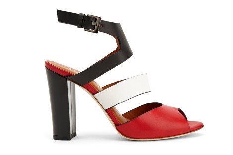Tetovirane Richardsonove ruke drže neobične i upečatljive sandale i torbicu iz kolekcije Valentino Rockstud Rouge i Rockstud Noir.
