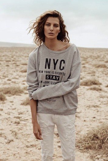 Prelepa kanadska manekenka ukrajinskog porekla pozirala je u pustinji na Kanarskim ostrvima s vrlo malo šminke u krpicama iz aktuelne prolećne kolekcije (ležernom sivom duksu, pamučnom belom jeansu, sivoj haljini sa blagim ranerićima na rukavima, beloj maksi suknji sa bluzom na diskretne pruge) koje su kreirane upravo za tip žene kakva je Daria: spontana, ženstvena, casual, cool.