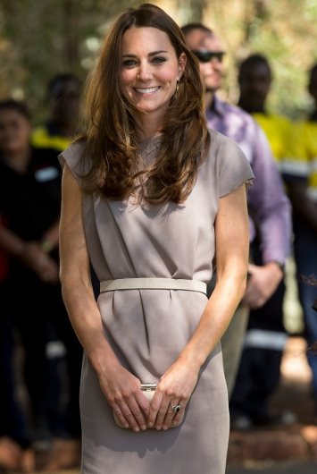 Kate se danas odlučila za jednostavnu i elegantnu haljinu u bež boji, sa Roksandinim potpisom, u kojoj smo već imali priliku da je vidimo u Los Anđelesu 2011. godine. Savršenu vojvotkinjinu liniju, naglasio je kaišić u nešto svetlijoj nijansi, a celu kombinaciju Kate je upotpunila bež salonkama.