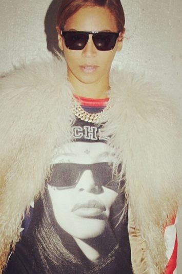Kao što i pretpostavljate, mali surfer na beloj majici predstavlja omiljeni deo, odnosno reč iz pesme „Drunk in Love“: Surfboard. Pametan potez, iako mi s nestrpljenjem iščekujemo da vidimo predlog za pesmu „Yonce“. Red punih usana „obojenih u tečno, crveni ruž? #justsayin