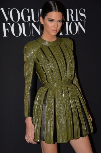 Kendall koja je na tekućoj Nedelji visoke mode briljirala, prvo na Chanelovoj reviji a potom i na Valentinovoj kada se pojavila u pudertirkiznoj kreaciji, za pomenutu žurku je izabrala savršenu mini haljinu iz aktuelne Balmain RTW kolekcije, maslinastozelenu haljinu koja je naglasila egzotiku koju Kendall poseduje i njen divan, blago preplanuo ten.