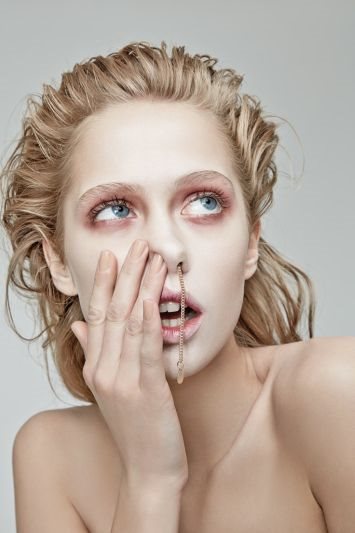 Ime editorijala je u skladu sa fotografijama i temom "Addicted to glam" i prikazuje manekenku Anastasiyu Kolbasko kako povraća i "šmrče" zlatan nakit. Za njen styling je bila zaslužna Liliya Simonyan, a za kosu i makeup Elena Zubareva.