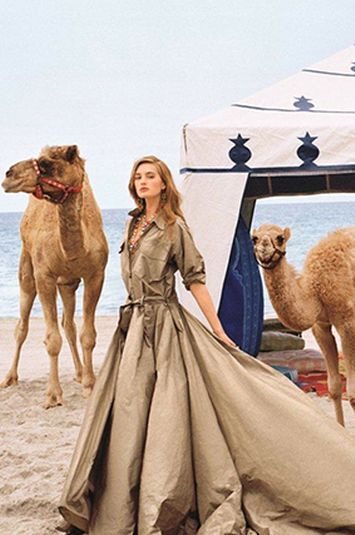Atraktivnu kampanju je fotografisao slavni modni fotograf, Bruce Weber, i to na napuštenoj, divljoj plaži na kojoj je prelepa Vloet pozirala obučena u dugačku, safari haljinu od sirove svile, u khaki boji, okružena sa pet kamila i šatorom u plavobeloj boji.