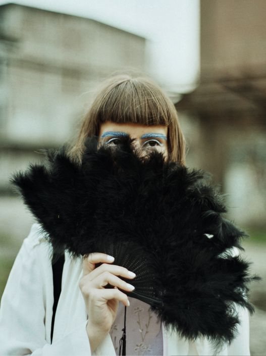 Tijanin portret je fragment iz serije fotografija nastalih marta prošle godine, u pejzažu oronule prve fabrike šećera u Jugoslaviji, napuštene pre više od trideset godina. Njena plava šminka, plastična lepeza sa veštačkim perjem i svetlucava sintetička garderoba stvorile su odličan kontrast prašnjavim, izlomljenim ciglama i korodiranom limu. Lepršajući nad ruševinama, izgledala je kao sablasna vila plastičnog doba u kom živimo. Atmosferi su dali doprinos i tmurni oblaci koji su se nadvijali nad nama, najavljujući kišu.
