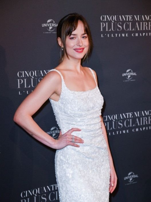 U stilu princeze: Dakota Johnson u beloj svetlucavoj haljini s potpisom Prade
