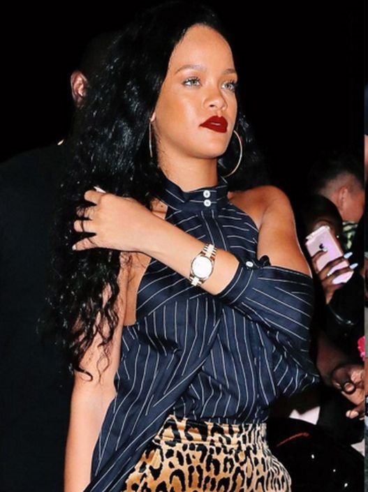 Samo ona može da iznese ovako divlju, neobičnu kombinaciju: Rihanna u animal print pantalonama i prugastoj bluzi koja otkriva ramena